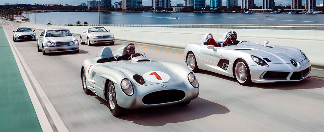 Uno de los modelos más destacados fue el Mercedes-Benz 300 SLR, un símbolo del dominio de la marca en el automovilismo. Junto a él, el Mercedes-Benz SLR McLaren "Stirling Moss" rindió homenaje a la legendaria victoria en la Mille Miglia de 1955. Estos modelos, junto con otros vehículos raros, cautivaron a la audiencia y reafirmaron el prestigio de la marca.